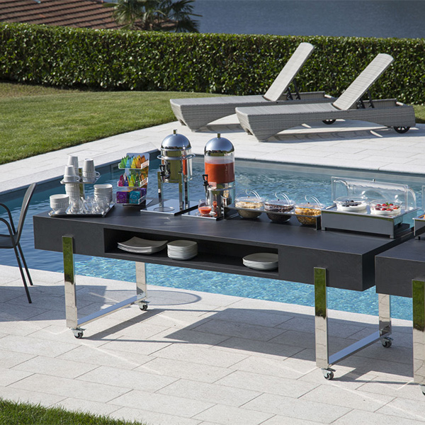 For the restaurant the dining room represents their own visiting ticket. Make customers accommodate, put them immediately at your own in a clean and organized environment and it is very important. With the term "mise en place" it is indicated the preparation of all the necessary material for a correct service. The "mise en place" is divided in two topics: the table and the service. When we talk about "table", we refer to the tablecloths, the menus, the dishes and the subtitles, the different goblets and glasses and the different cutlery to be used according to pietances. When we talk about "service", we refer to carts (garridon) to warmers (rechaud), trays and everything that does not find fixed location on the table. A fascinating world, always in continuous evolution in taste and materials, that our company follows with many possibilities of choice.